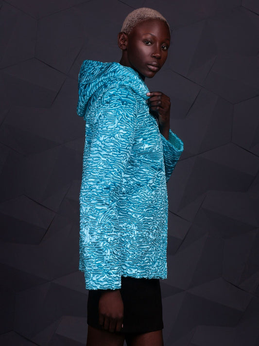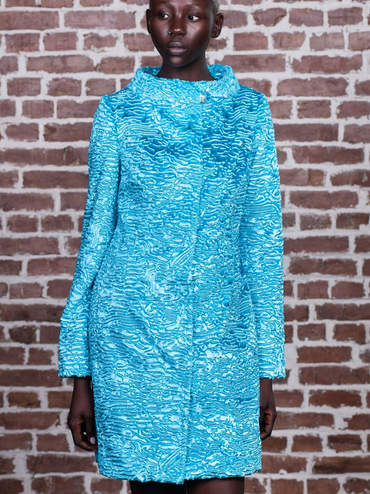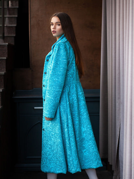 Жіноче пальто з еко-хутра – Каракуль Аквамарин