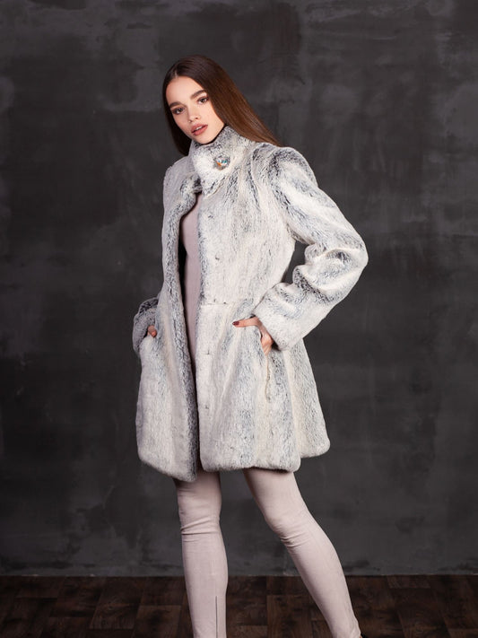 Жіноча шуба з еко-хутра – Шиншила Алмаз