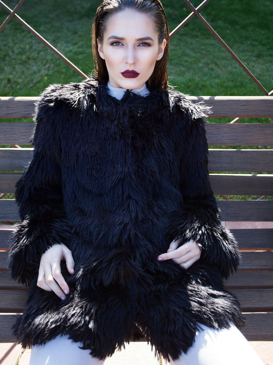 Жіноча шуба з еко-хутра – Лама Обсидіан