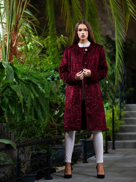 Жіноче пальто з еко-хутра – Каракуль Гранат