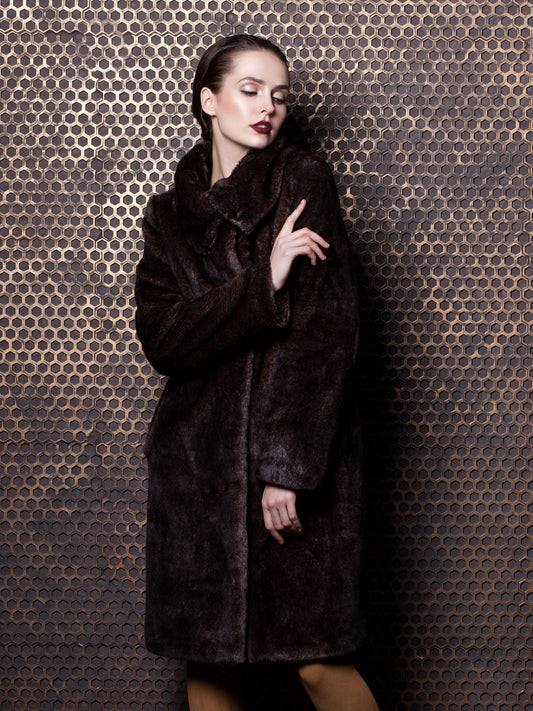 Жіноча шуба з еко-хутра – Лама Обсидіан