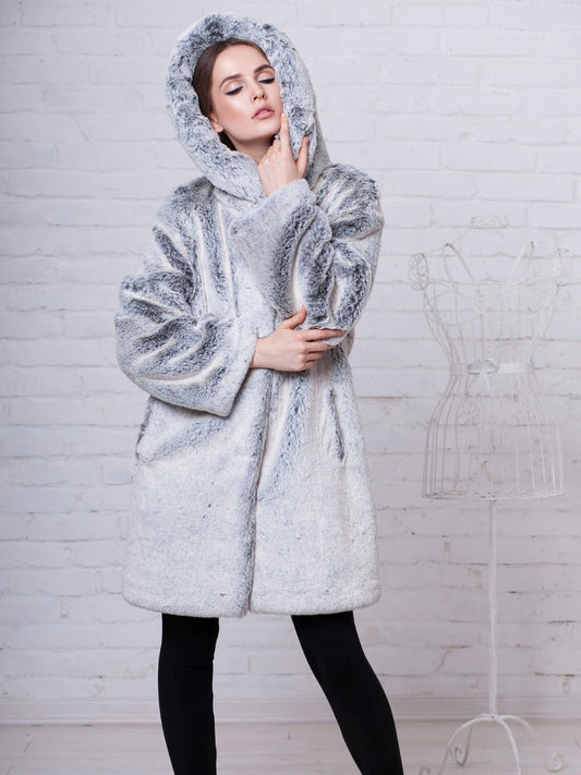Жіноча шуба з еко-хутра – Шиншила Алмаз