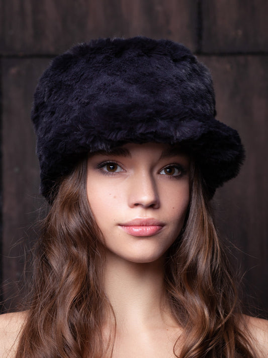 Жіноча панама з еко-хутра – Лама Обсидіан