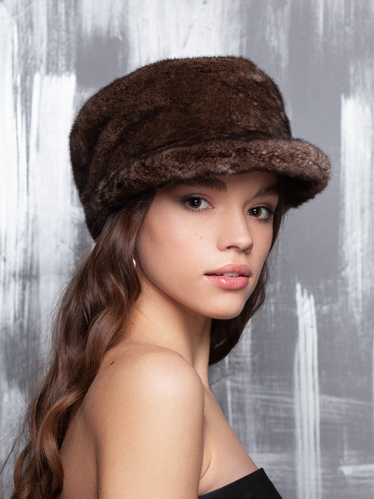 Жіноча бейсболка з еко-хутра – Каракуль Гранат