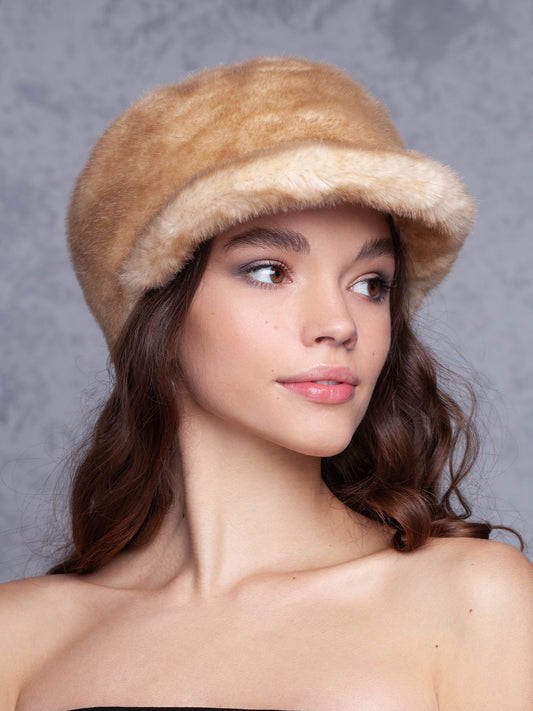 Жіноча бейсболка з еко-хутра – Каракуль Маренго