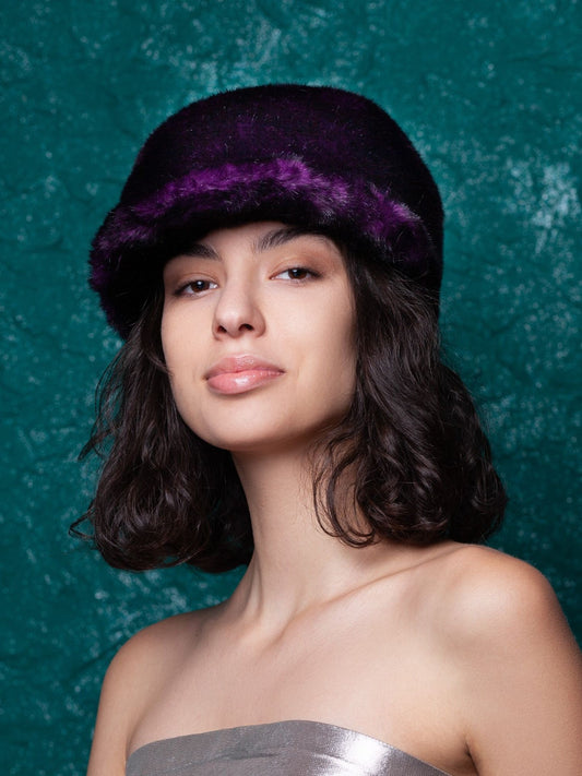 Жіноча панама з еко-хутра – Каракуль Гранат