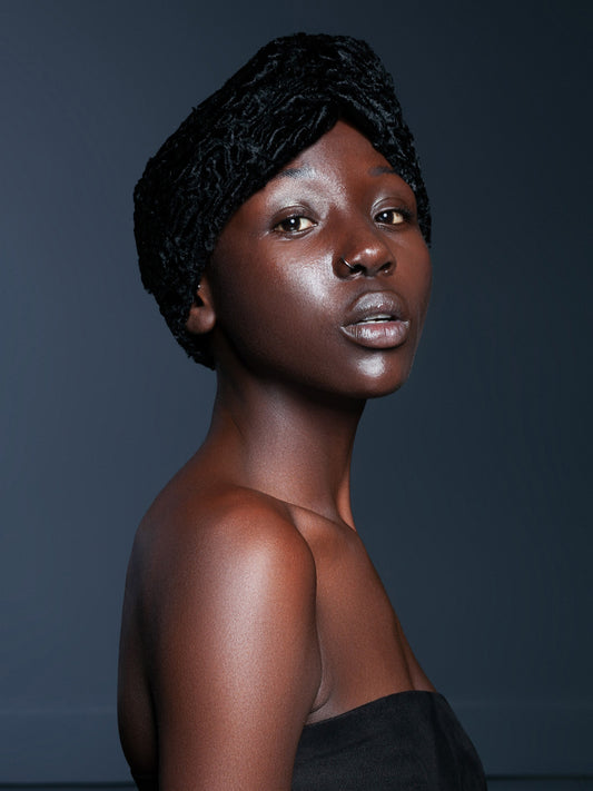 Жіночий тюрбан з еко-хутра – Каракуль Обсидіан