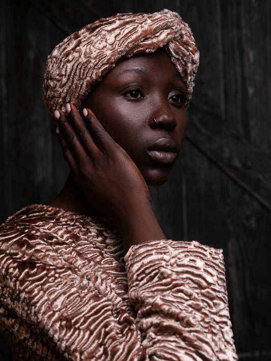 Жіночий тюрбан з еко-хутра – Каракуль Онікс