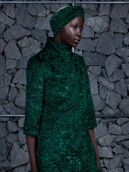 Жіночий тюрбан з еко-хутра – Каракуль Смарагд