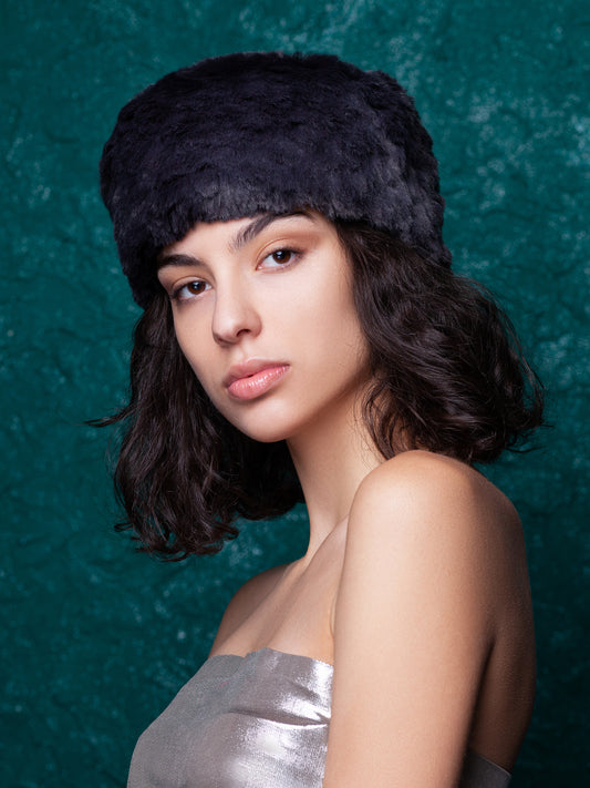 Жіноча пілотка з еко-хутра – Каракуль Обсидіан
