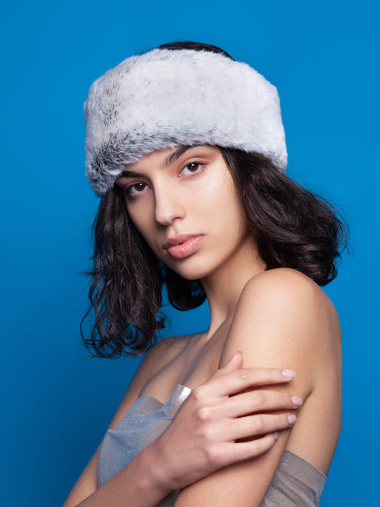 Жіноча повязка з еко-хутра – Шиншила Алмаз