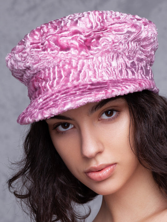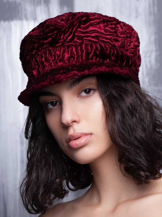Жіночий картуз з еко-хутра – Каракуль Гранат