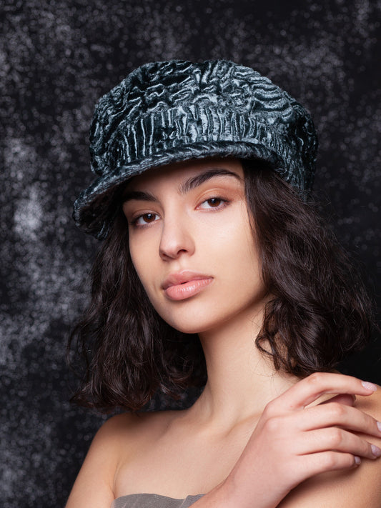 Жіночий картуз з еко-хутра – Каракуль Обсидіан