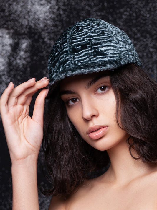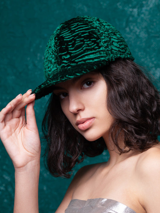 Жіноча бейсболка з еко-хутра – Каракуль Смарагд