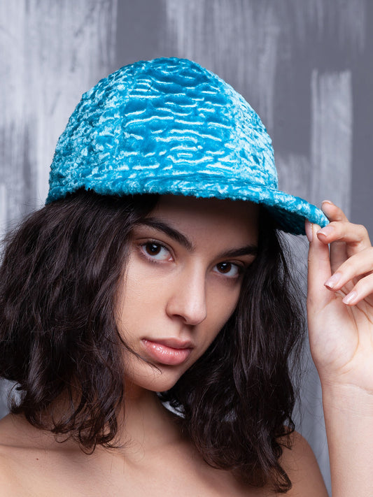 Жіноча бейсболка з еко-хутра – Каракуль Аквамарин