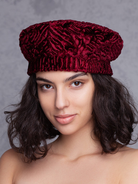 Жіночий берет з еко-хутра – Каракуль Гранат