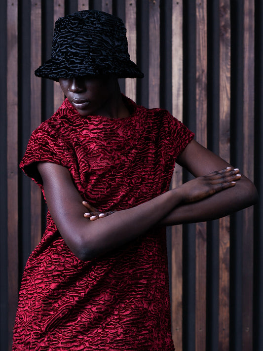 Жіноча панама з еко-хутра – Каракуль Обсидіан