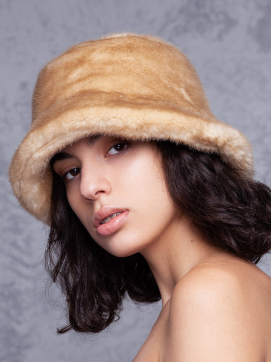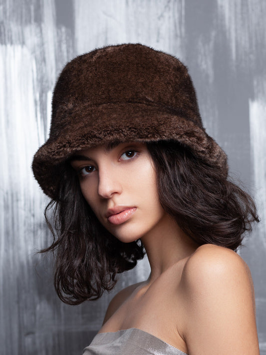 Жіноча панама з еко-хутра – Соболь Шоколад