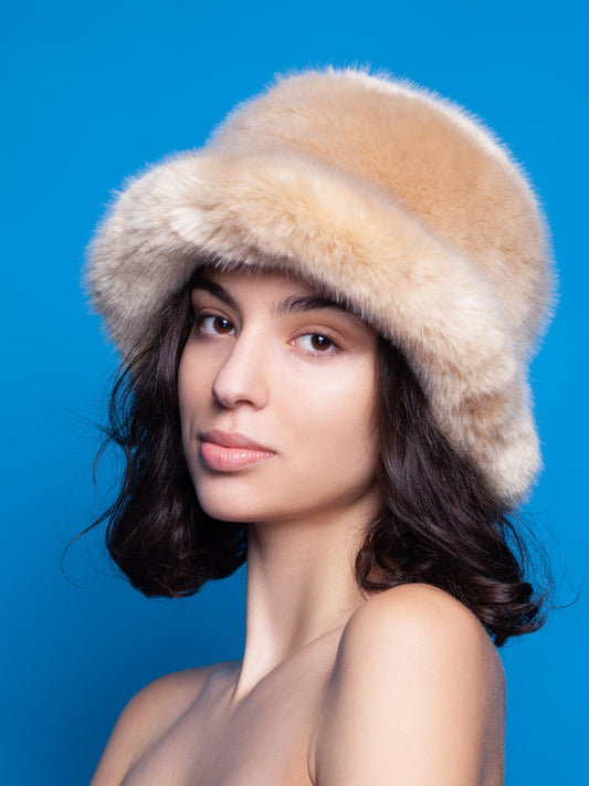 Жіноча панама з еко-хутра – Лама Обсидіан