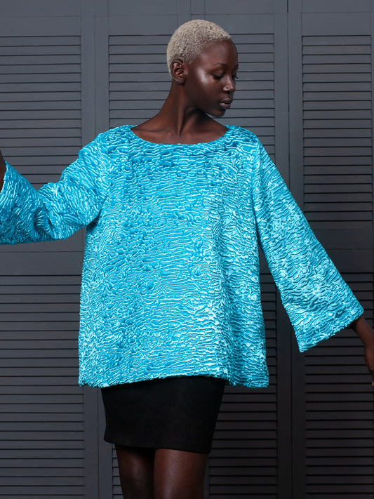 Жіночий светр з еко-хутра – Каракуль Аквамарин