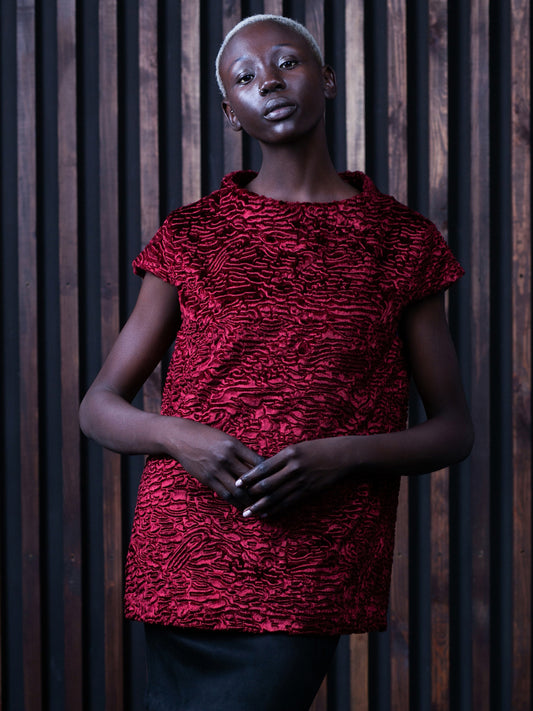 Жіночий светр з еко-хутра – Каракуль Гранат