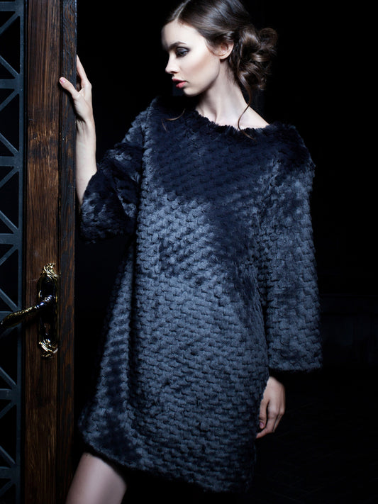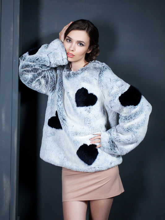 Жіночий светр з еко-хутра – Каракуль Обсидіан