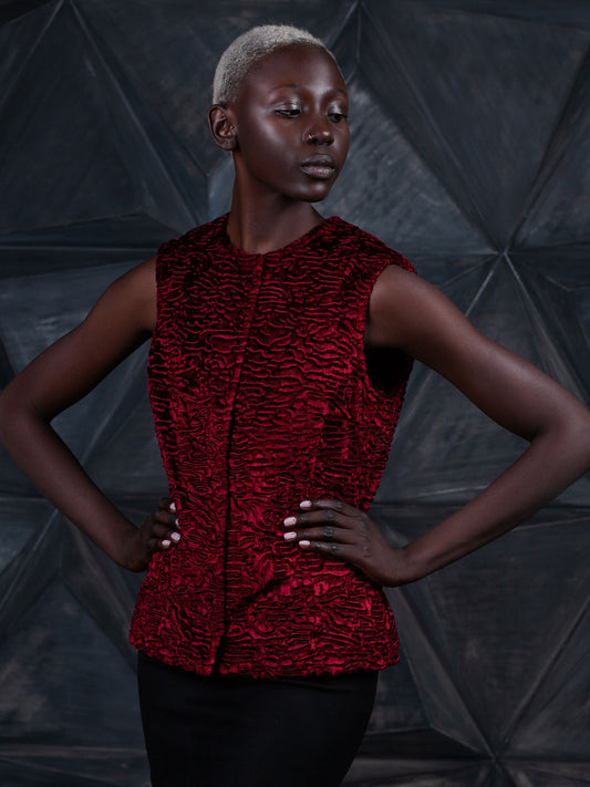 Жіночий жилет з еко-хутра – Каракуль Гранат