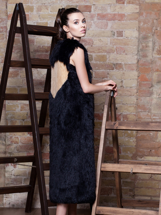 Жіночий жилет з еко-хутра – Лама Обсидіан