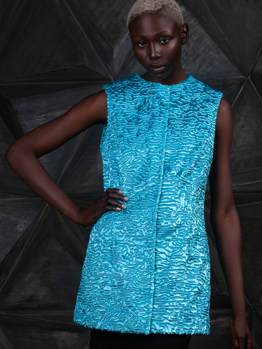 Жіночий жилет з еко-хутра – Каракуль Аквамарин