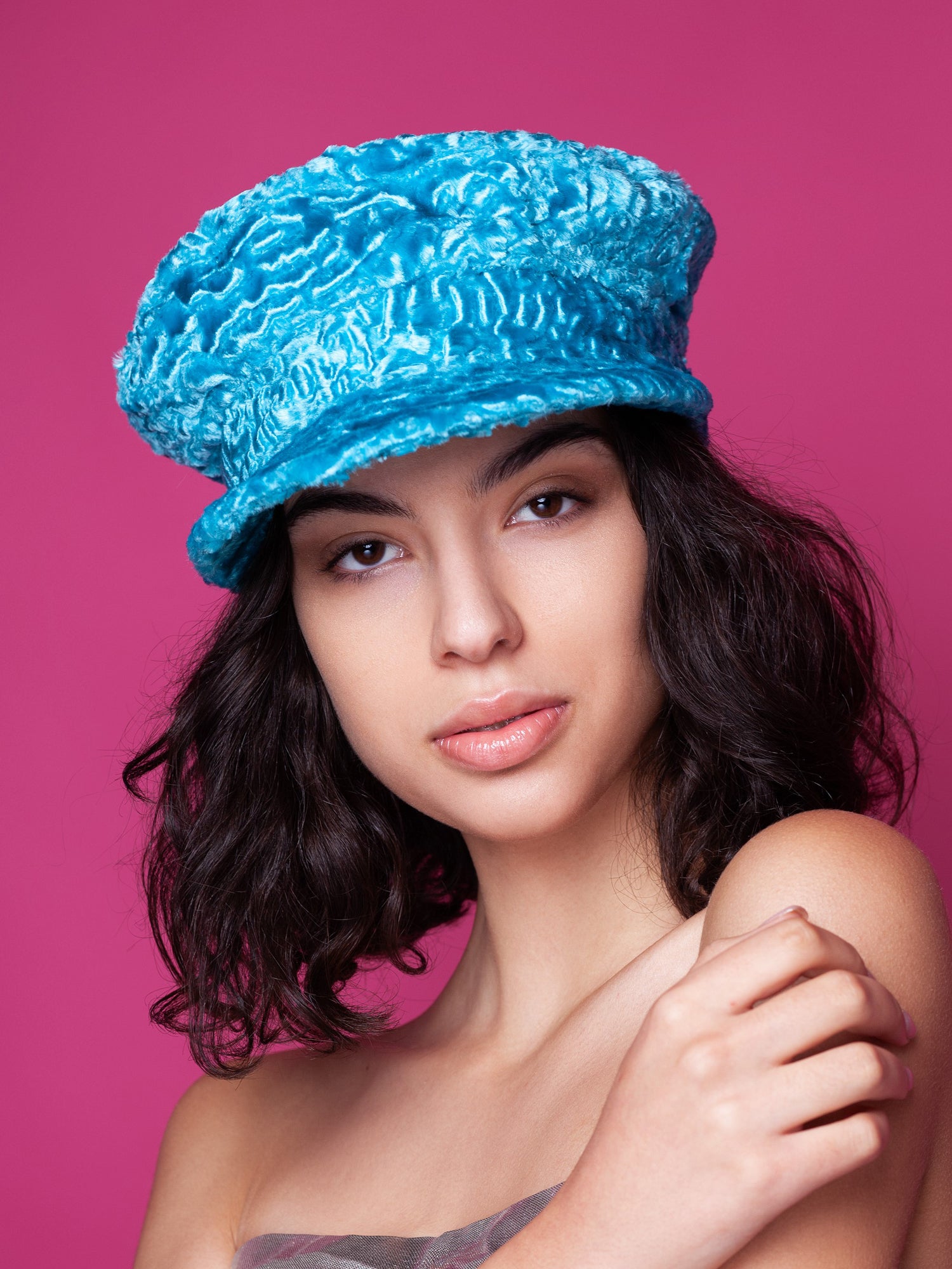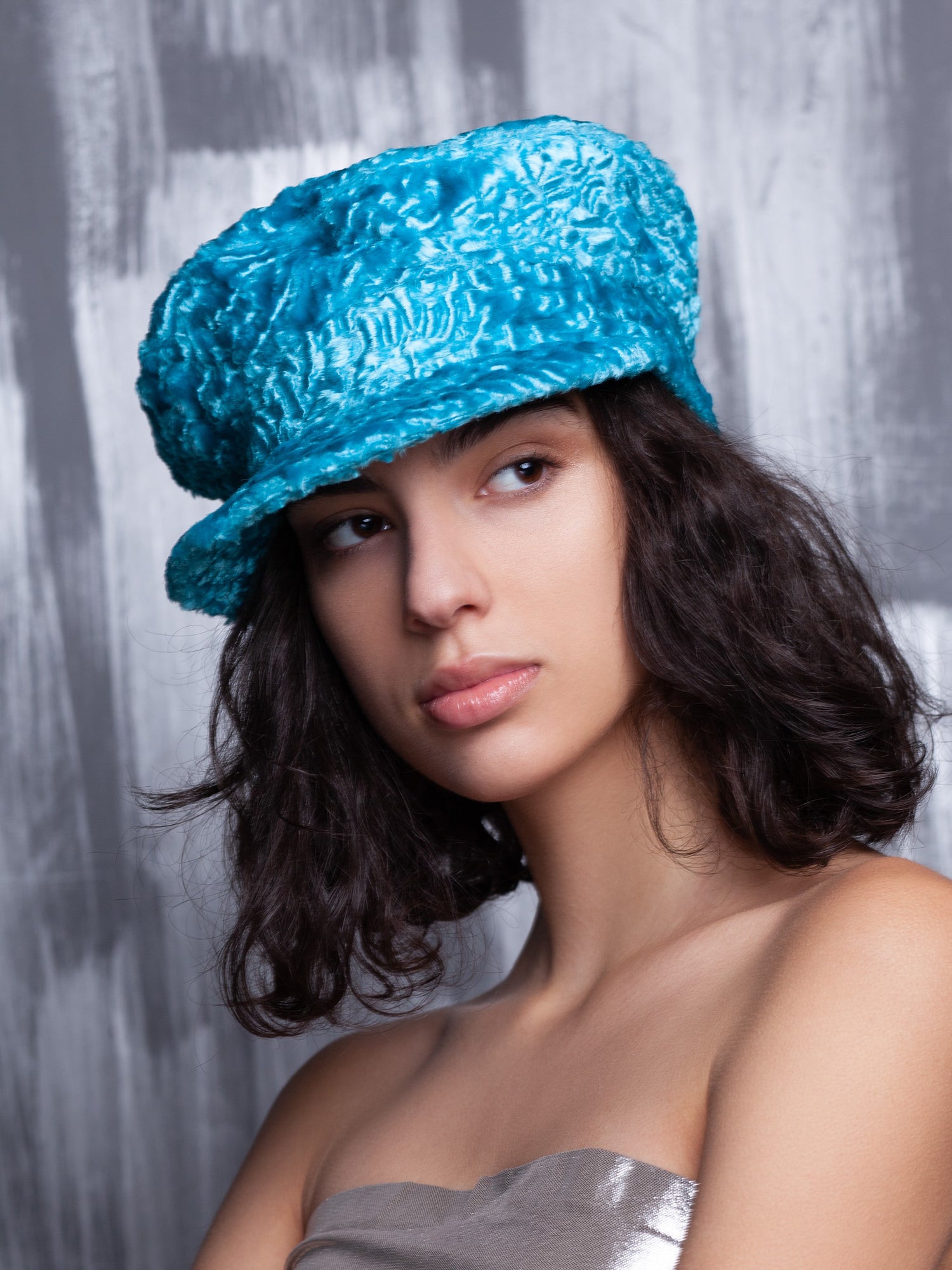 Жіночий картуз з еко-хутра – Каракуль Аквамарин