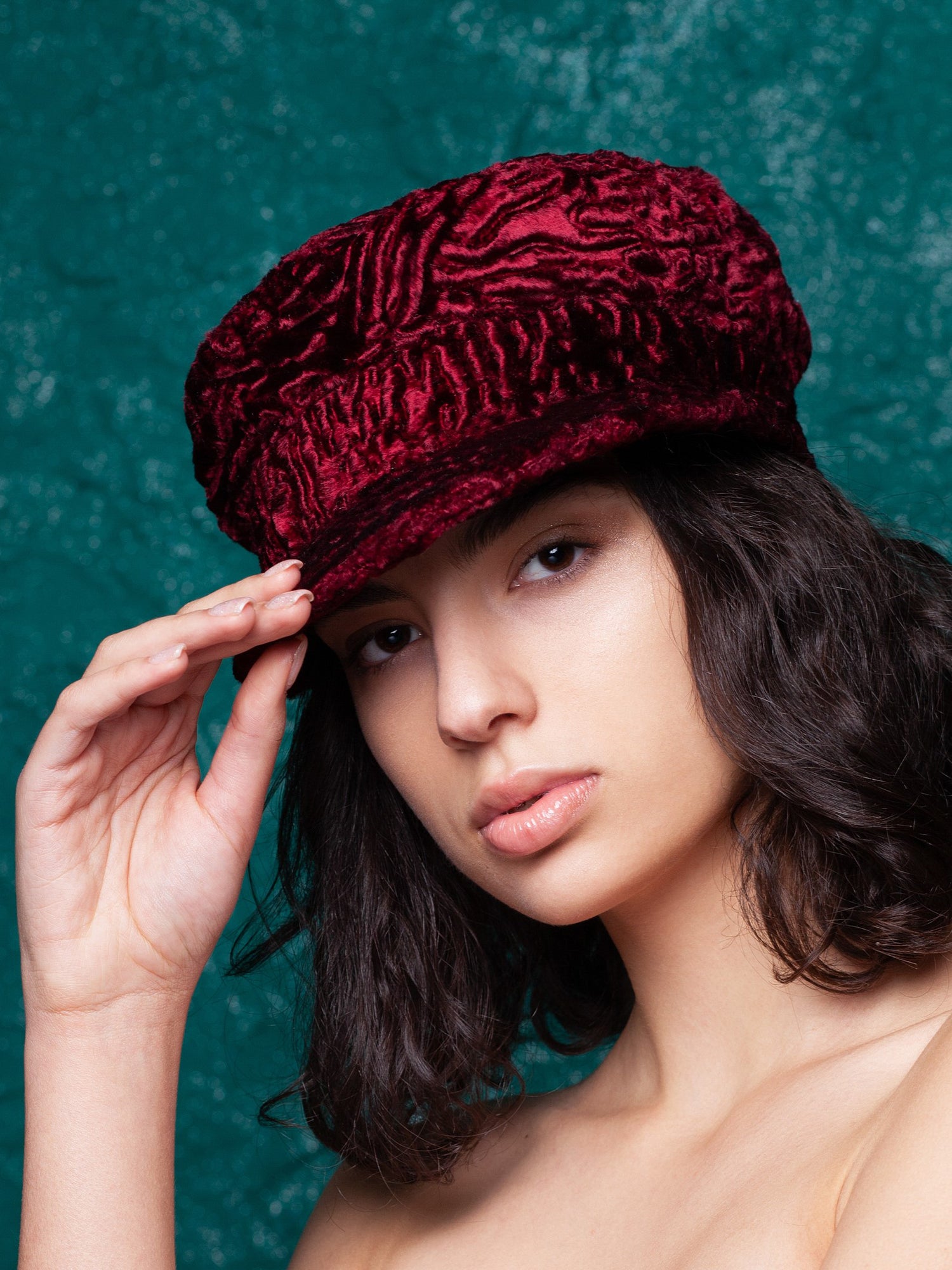 Жіночий картуз з еко-хутра – Каракуль Гранат