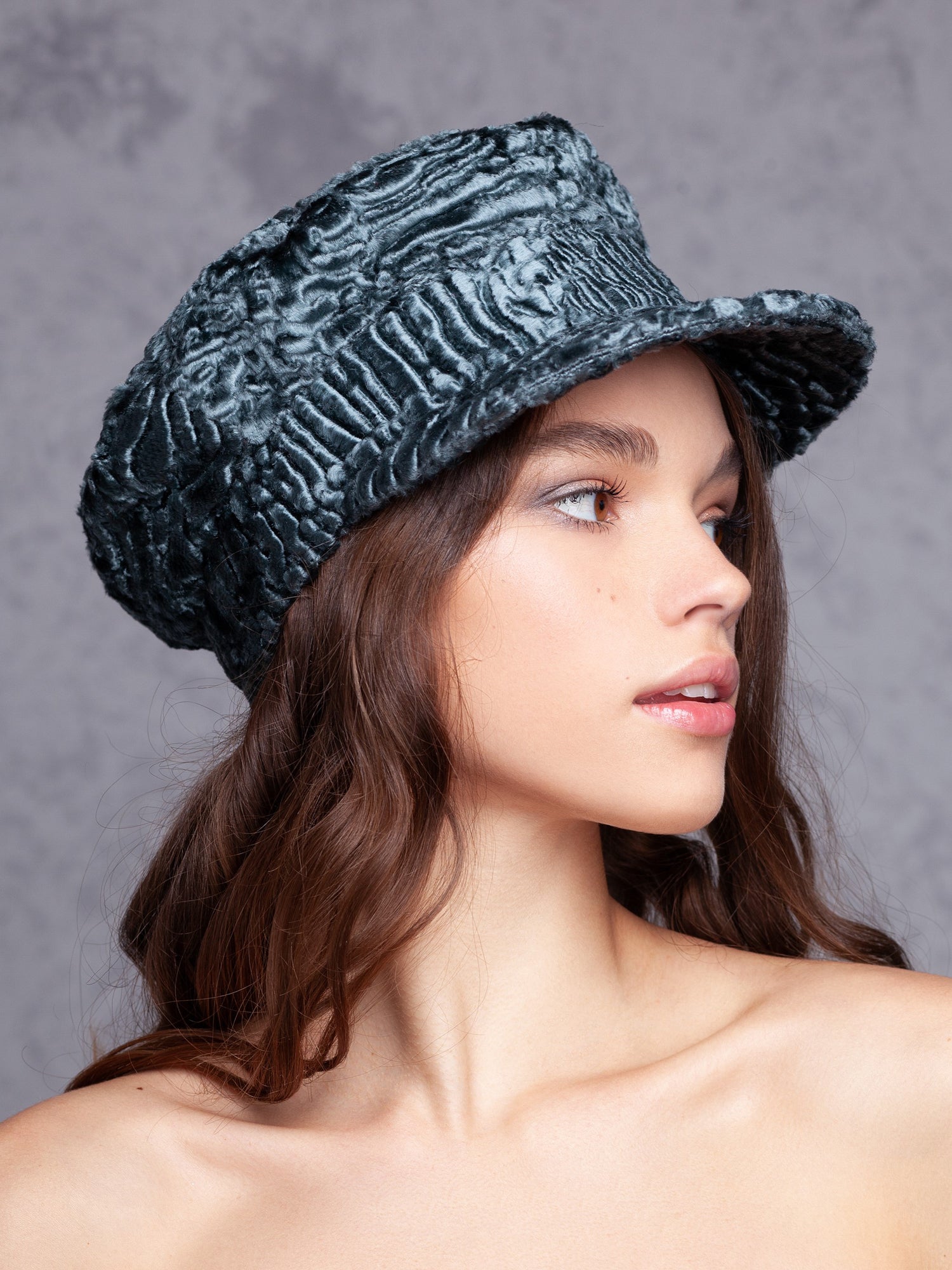 Жіночий картуз з еко-хутра – Каракуль Маренго