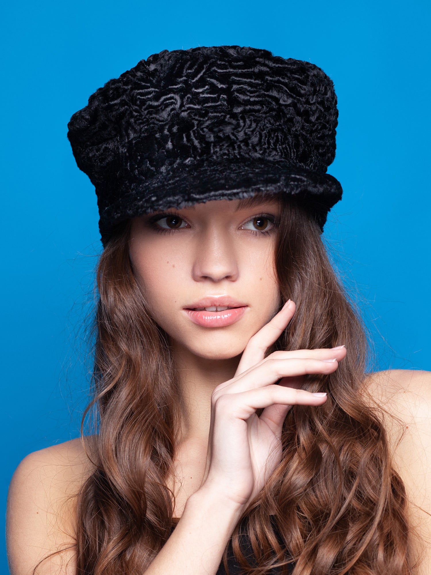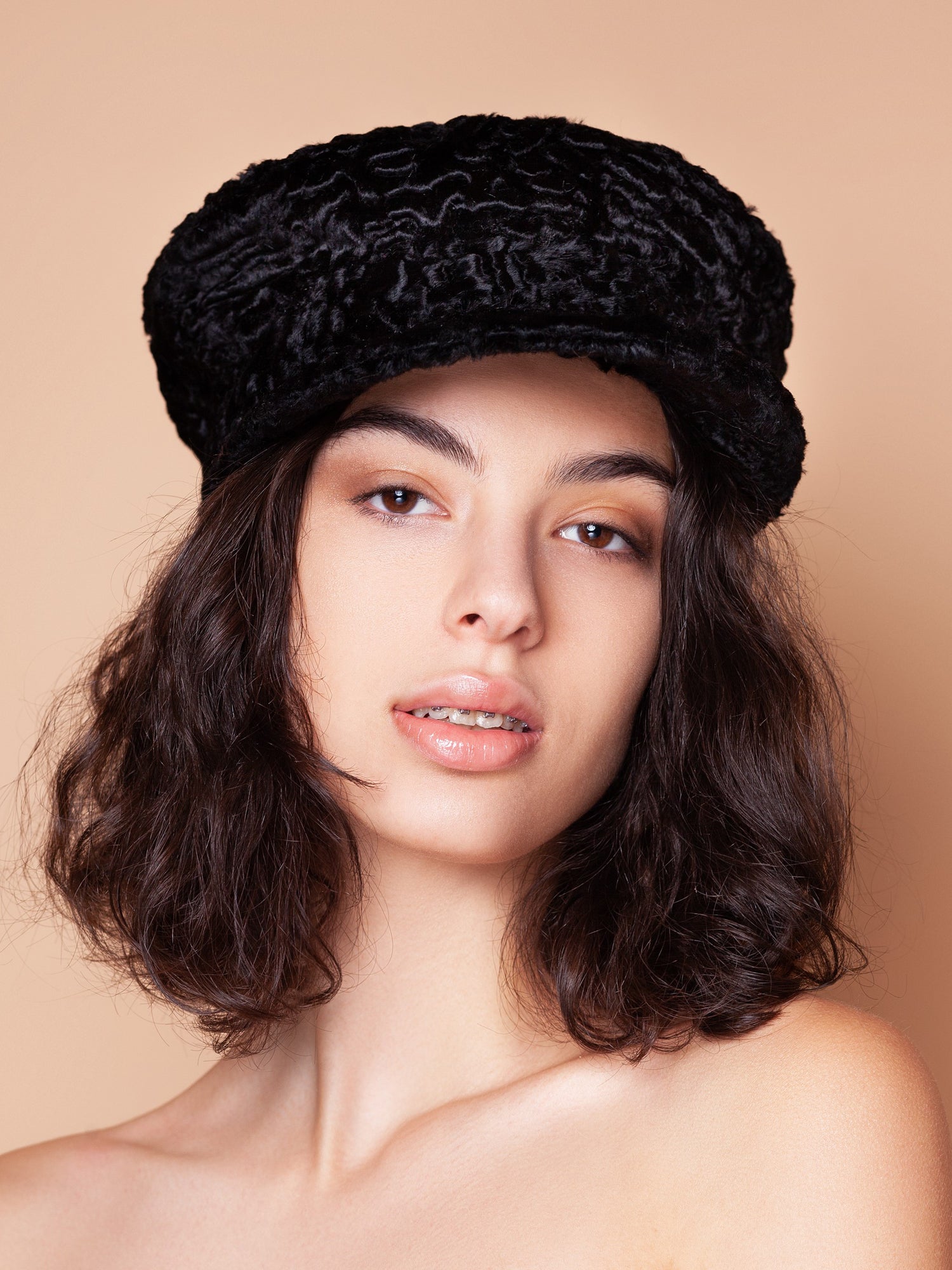 Жіночий картуз з еко-хутра – Каракуль Обсидіан