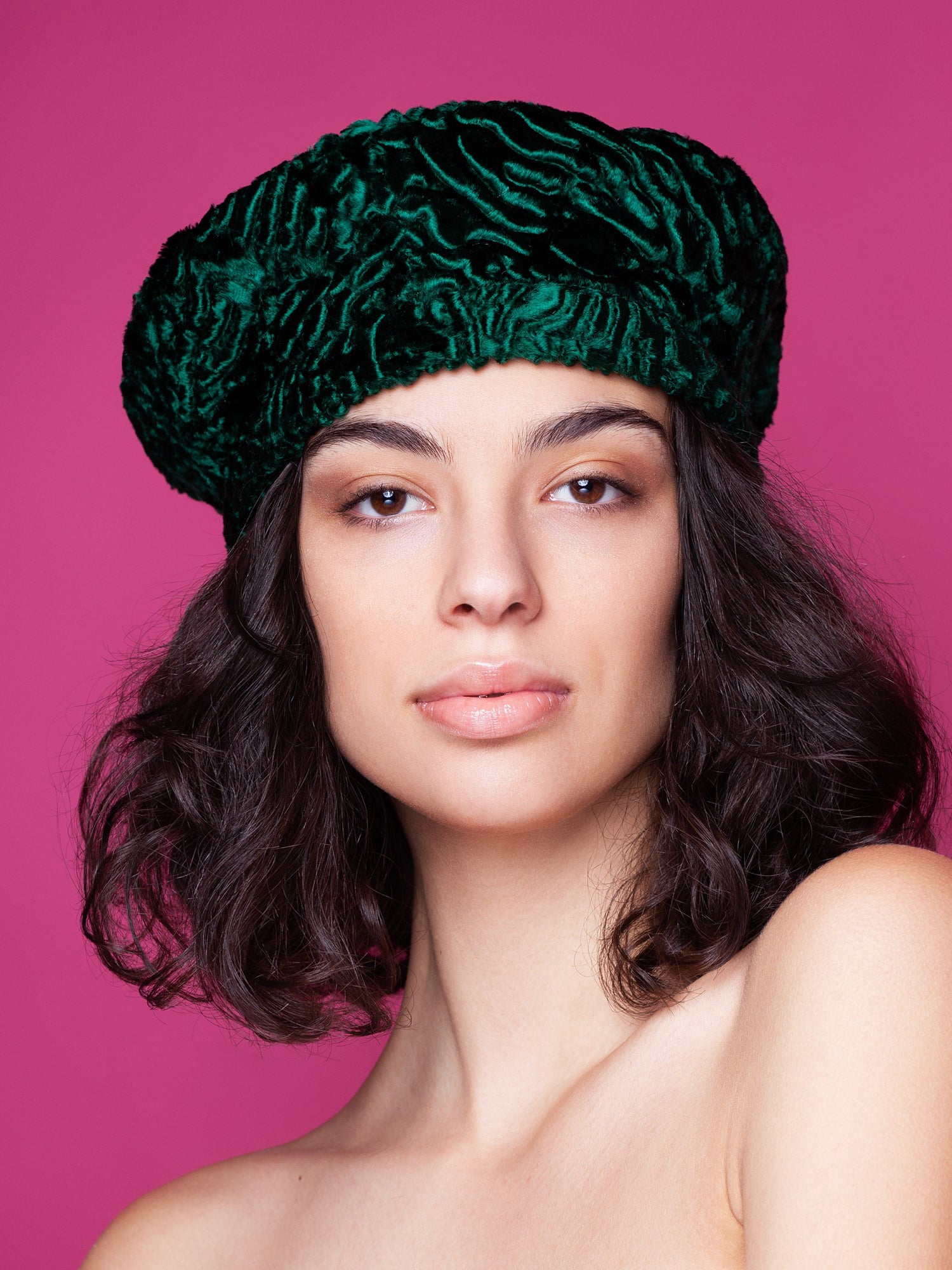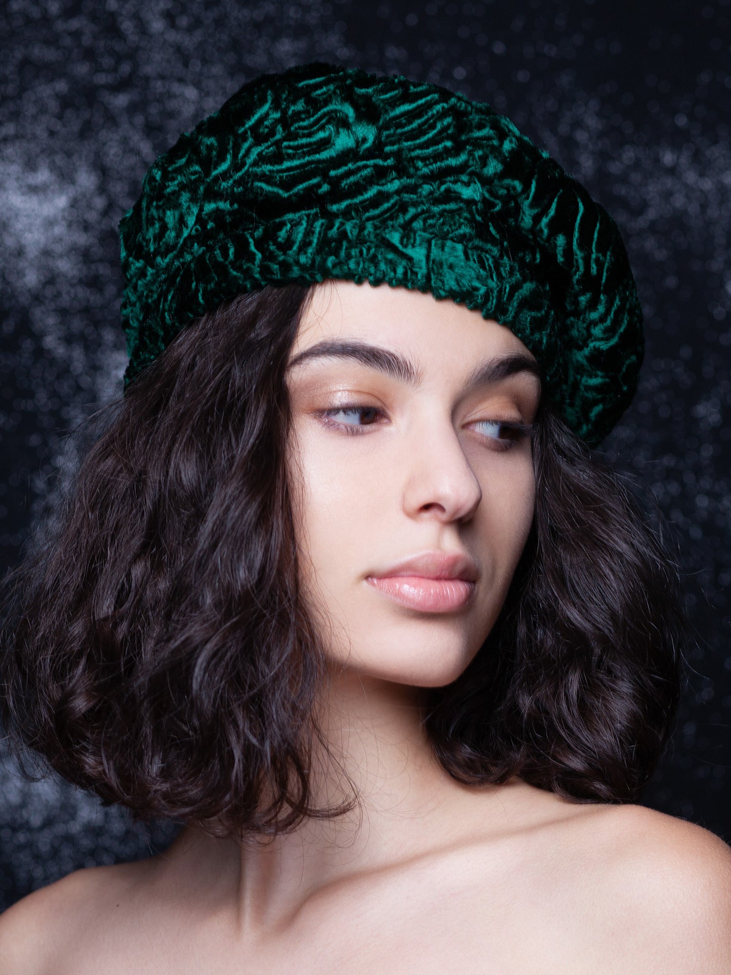 Жіночий берет з еко-хутра – Каракуль Смарагд