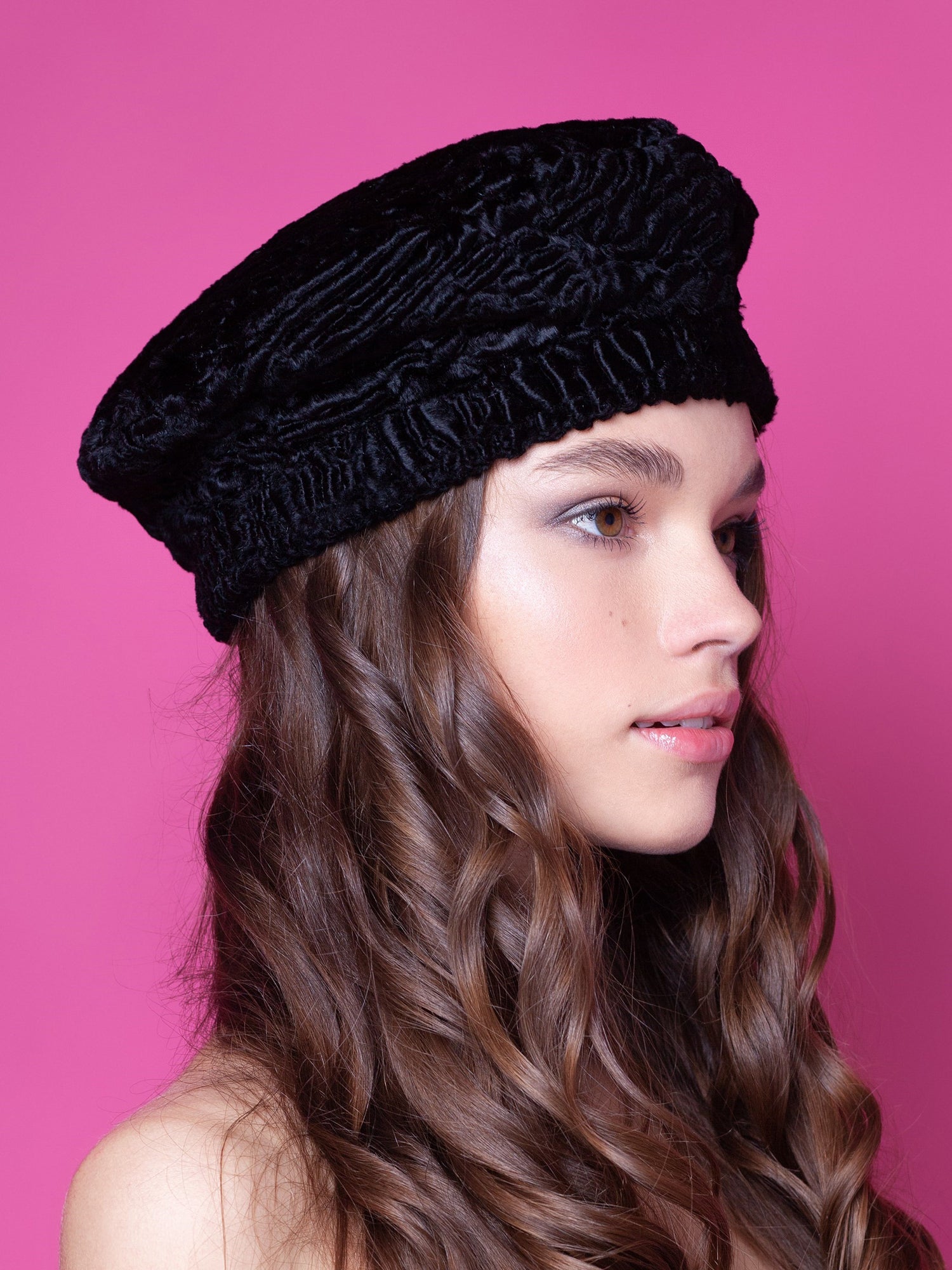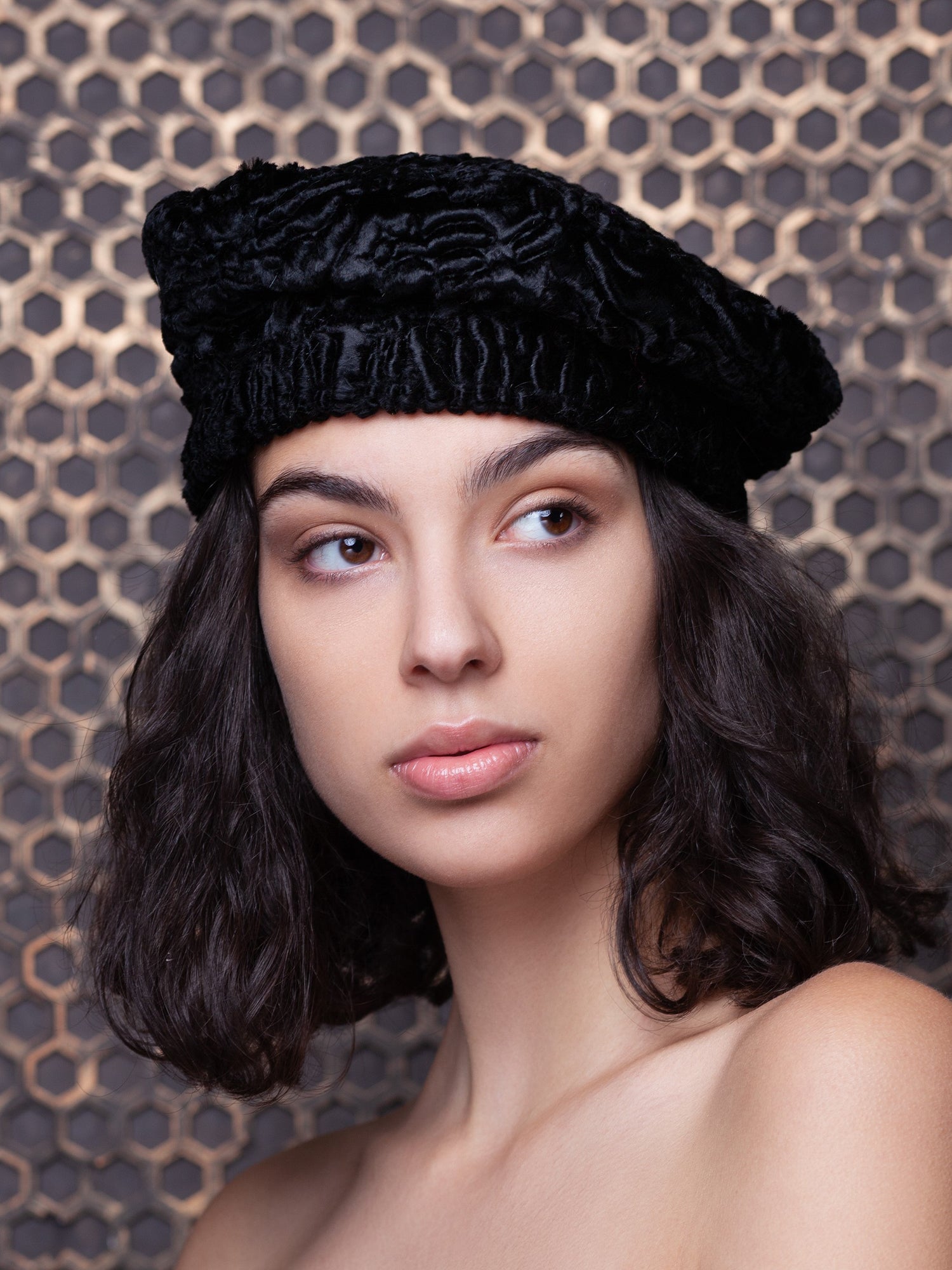 Жіночий берет з еко-хутра – Каракуль Обсидіан