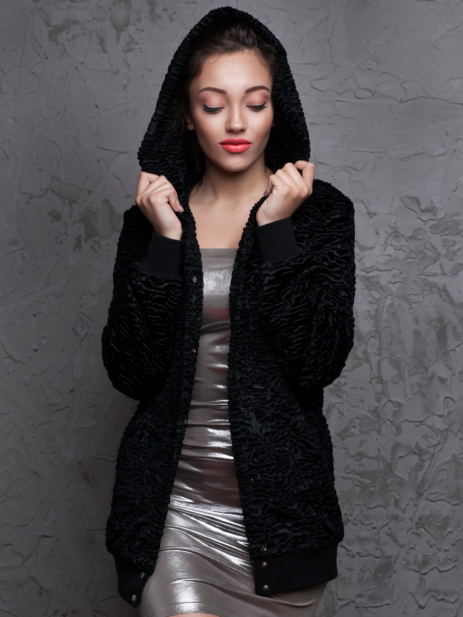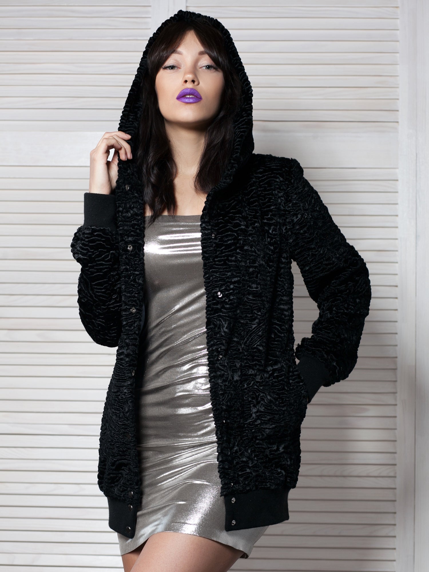 Жіночий бомбер з еко-хутра – Каракуль Обсидіан