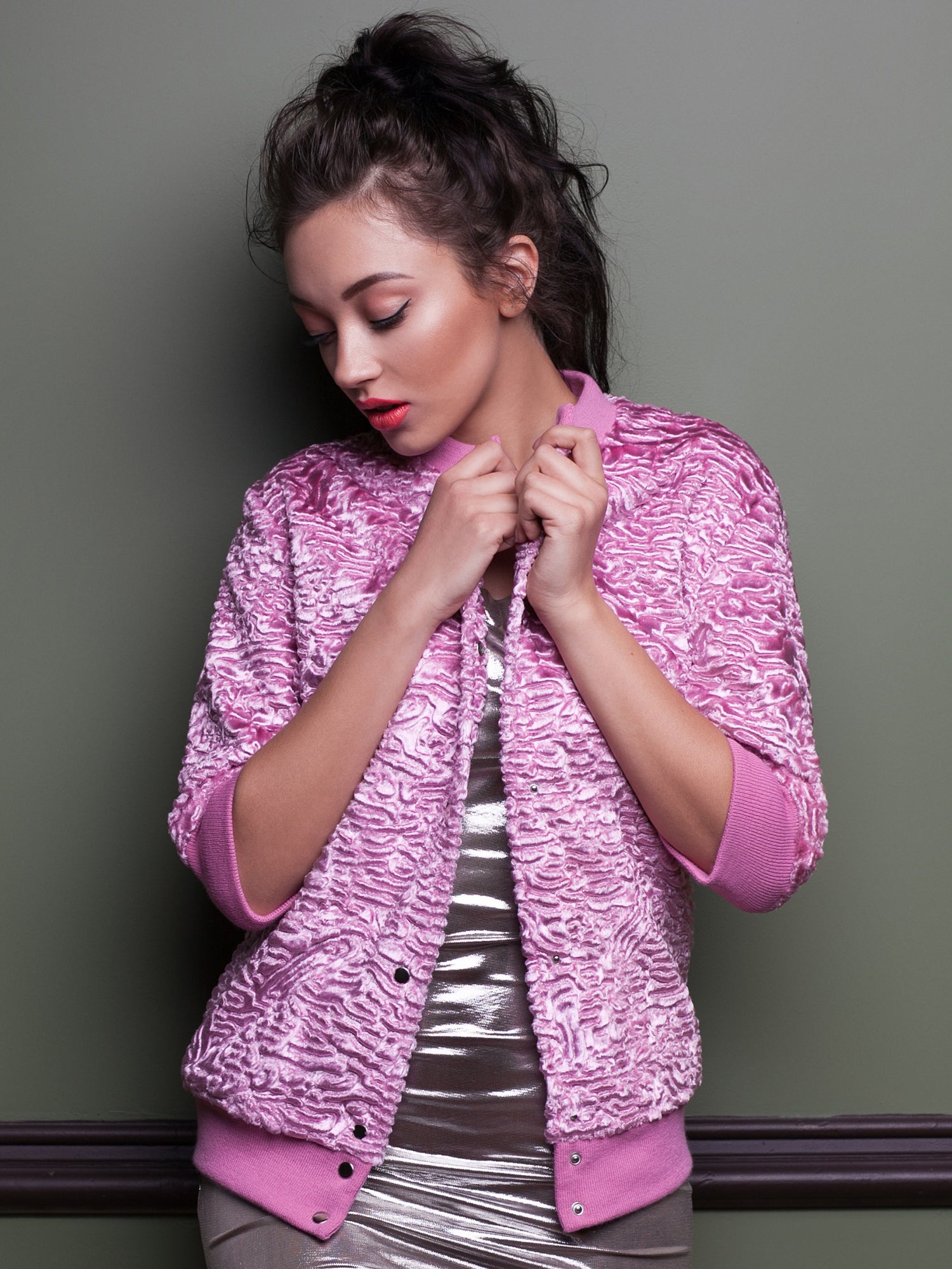 Жіночий бомбер з еко-хутра – Каракуль Кварц