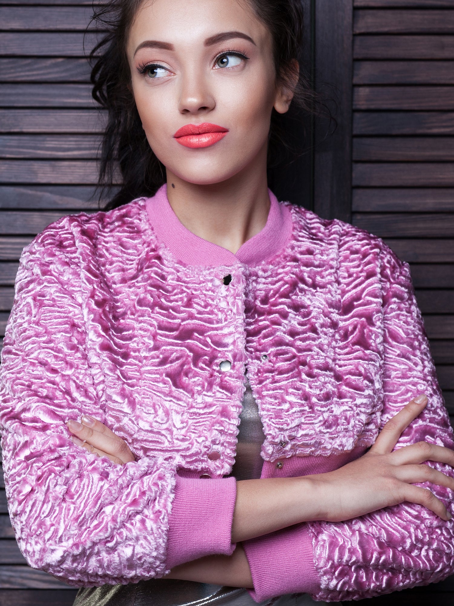 Жіночий бомбер з еко-хутра – Каракуль Кварц