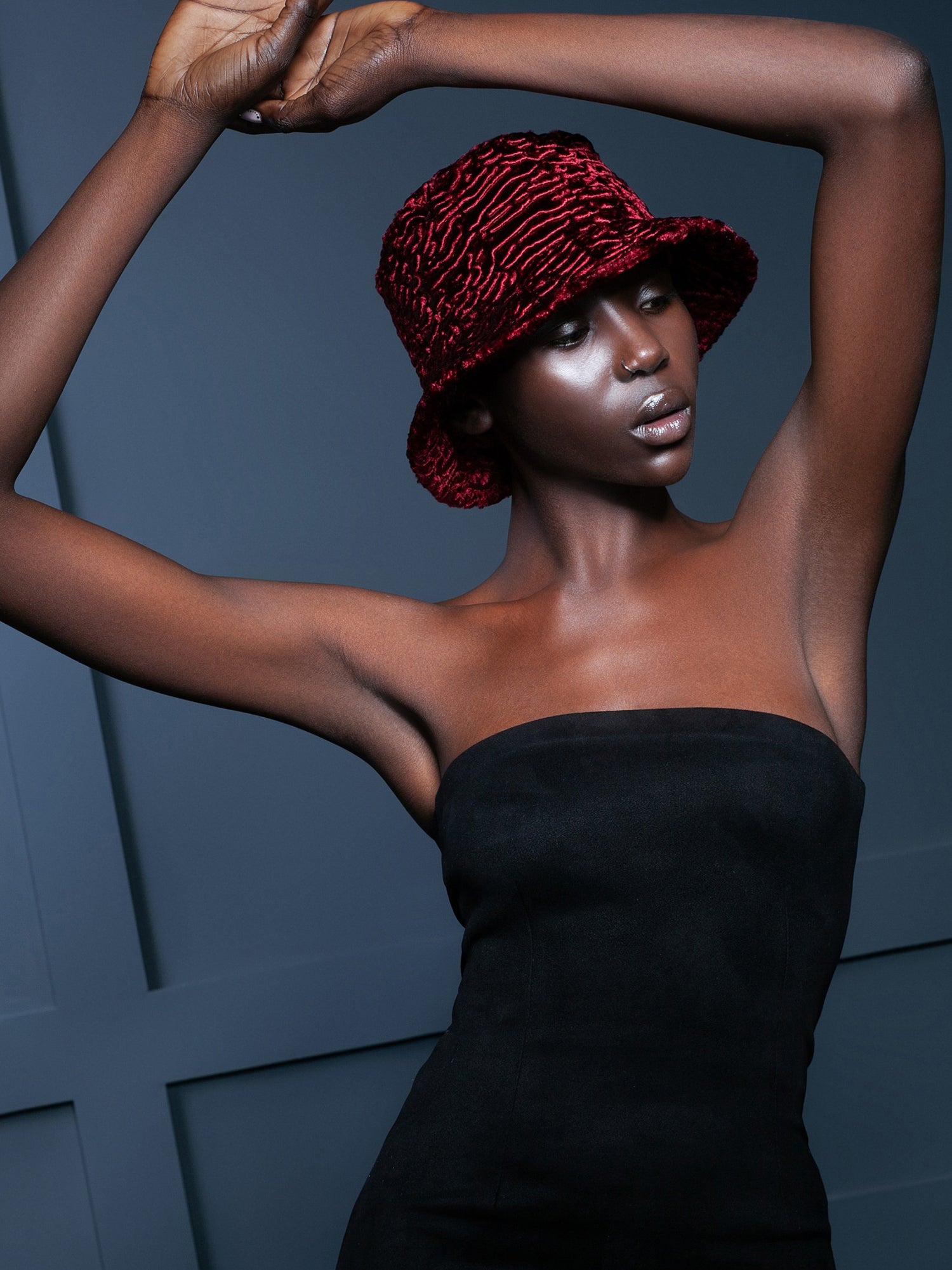 Жіноча панама з еко-хутра – Каракуль Гранат