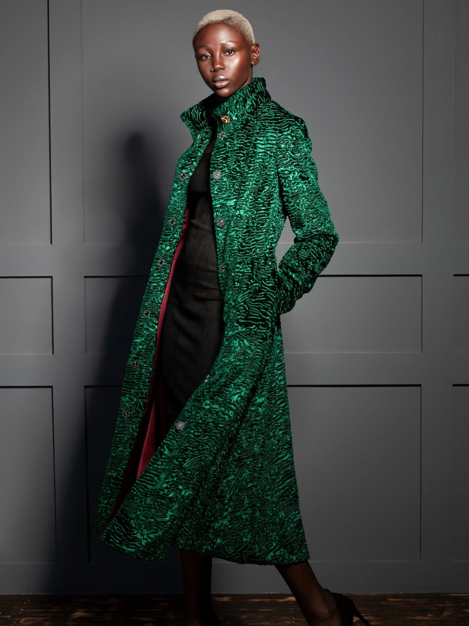 Жіноче пальто з еко-хутра – Каракуль Смарагд
