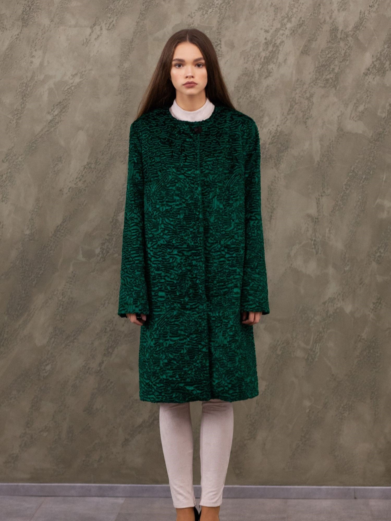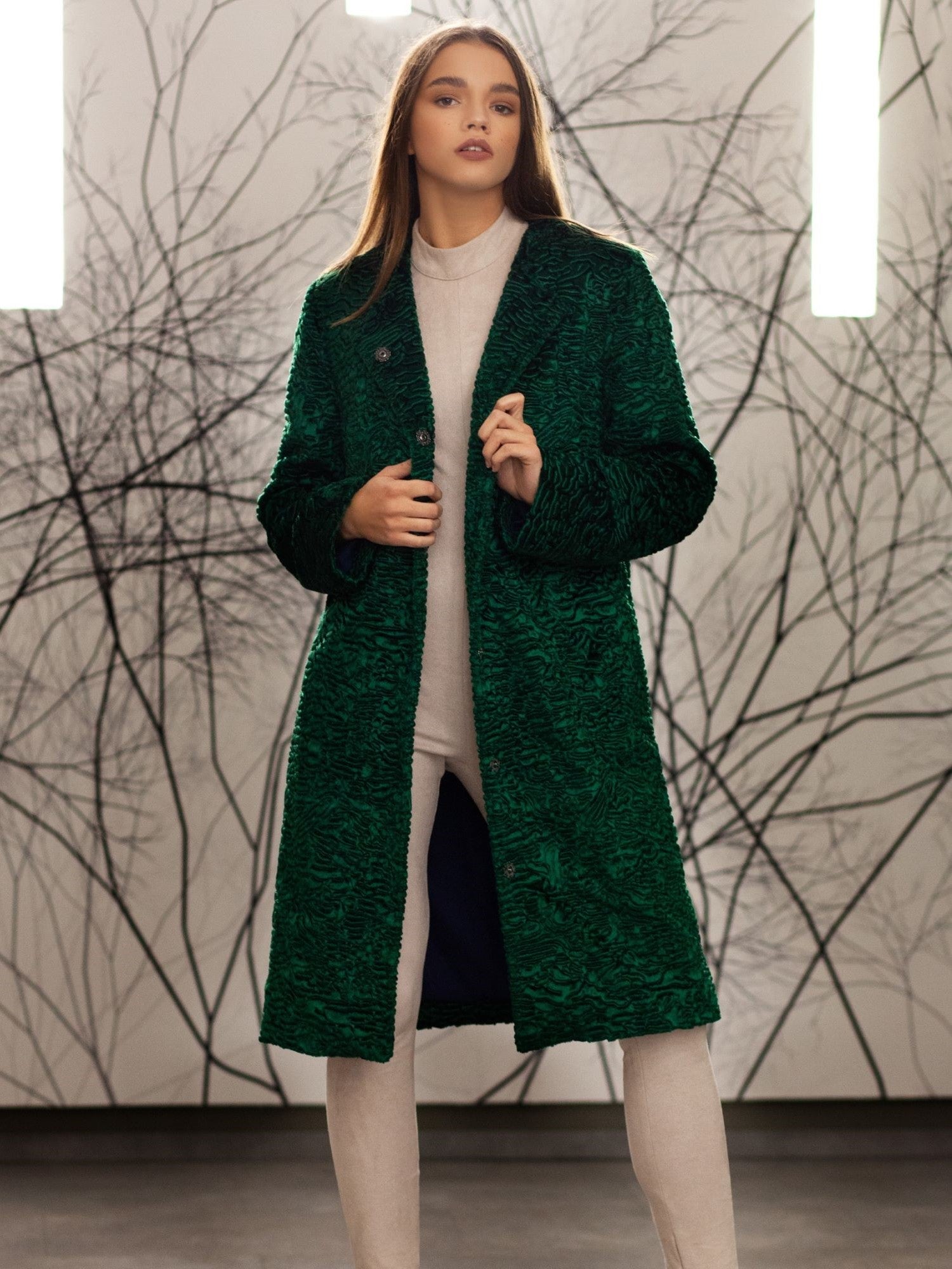 Жіноче пальто з еко-хутра – Каракуль Смарагд