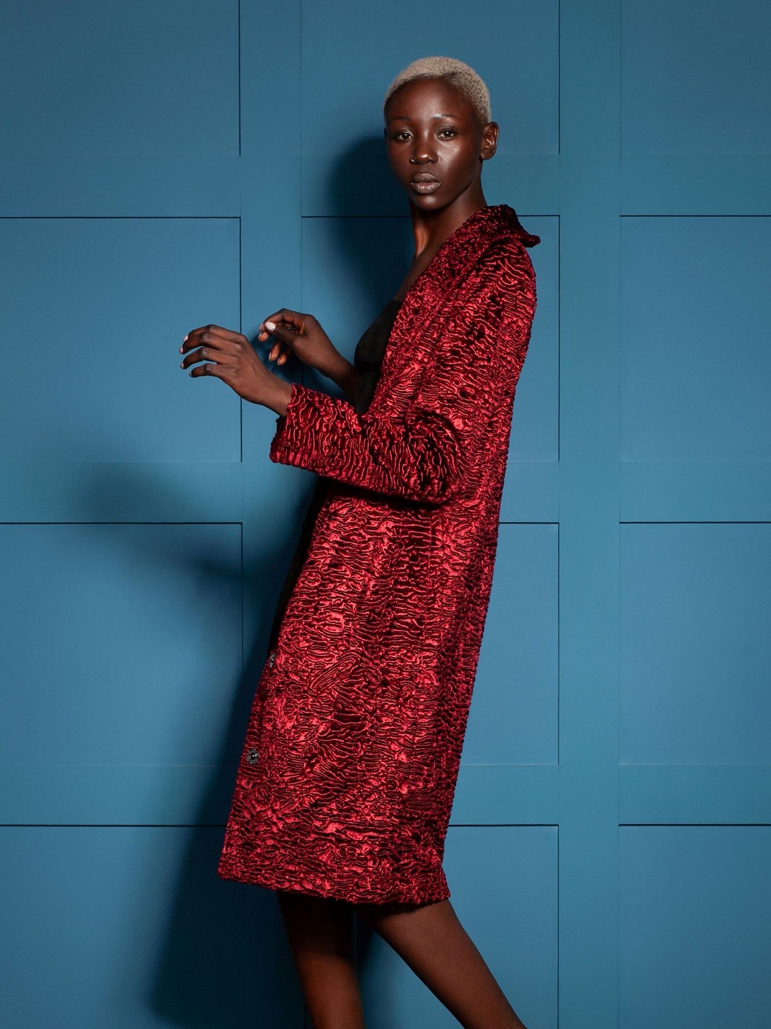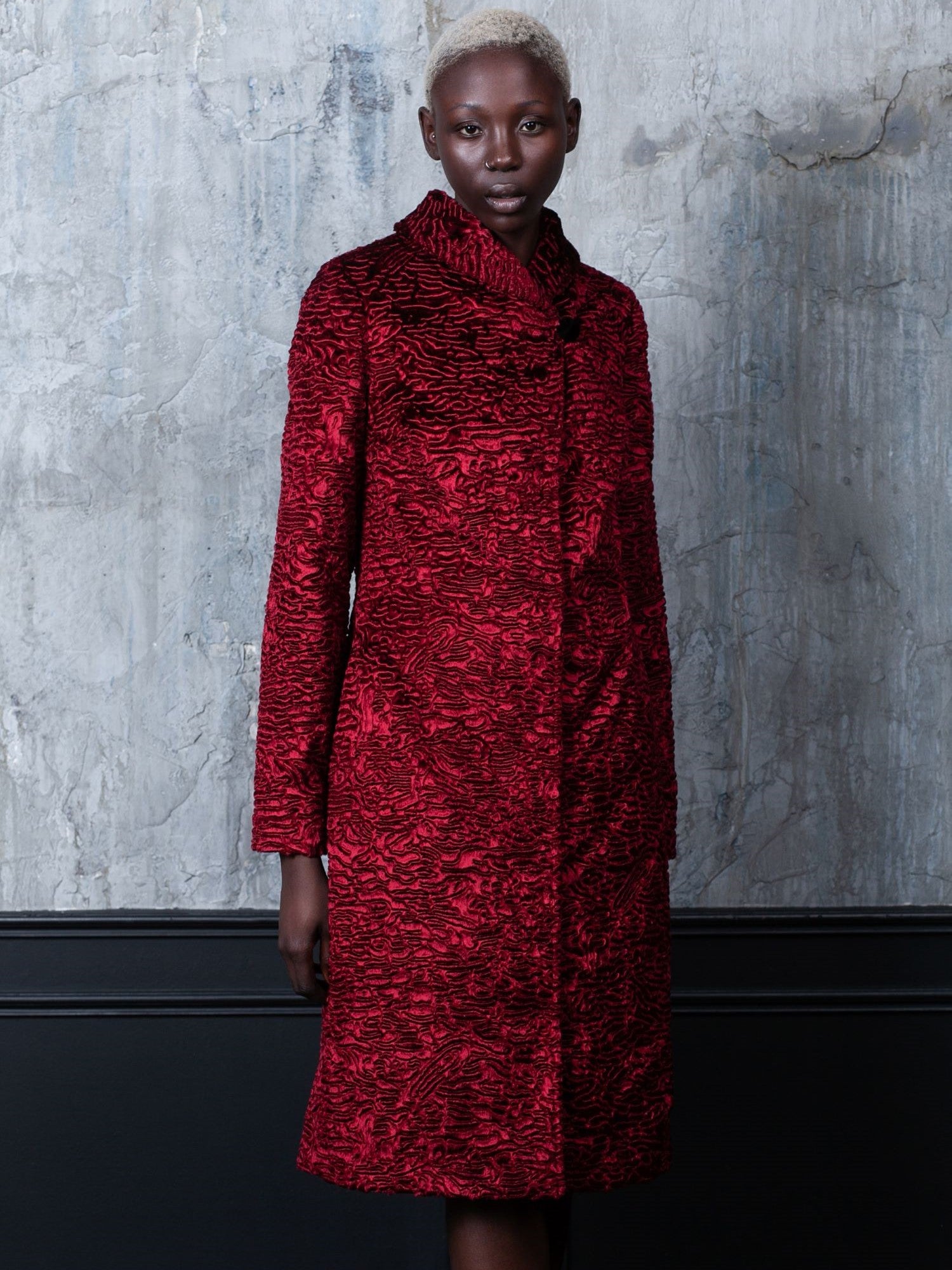 Жіноче пальто з еко-хутра – Каракуль Гранат