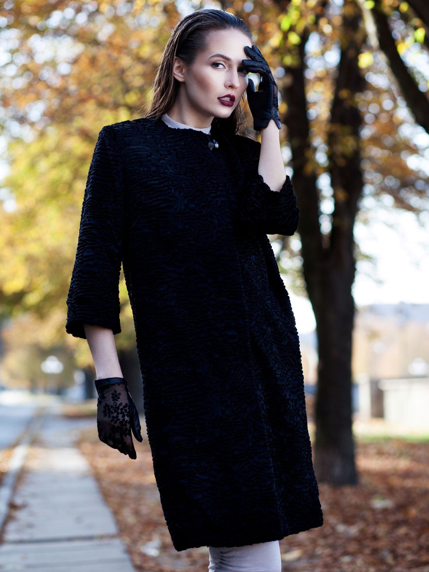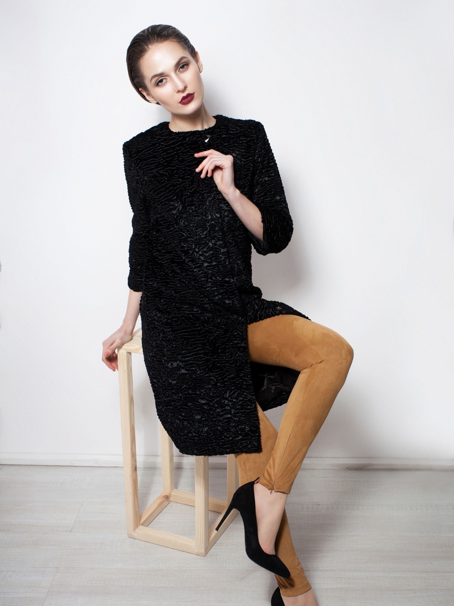 Жіноче пальто з еко-хутра – Каракуль Обсидіан