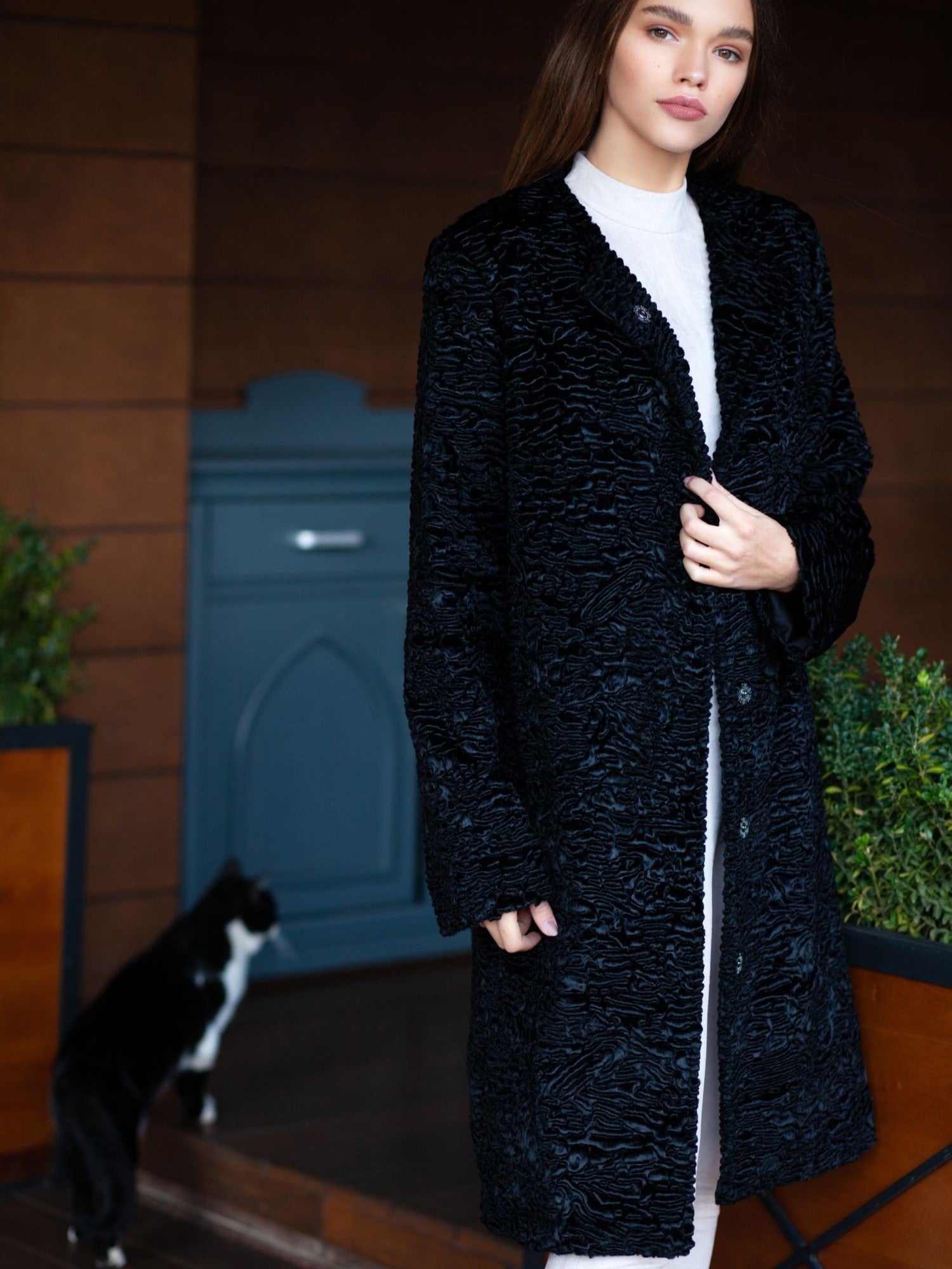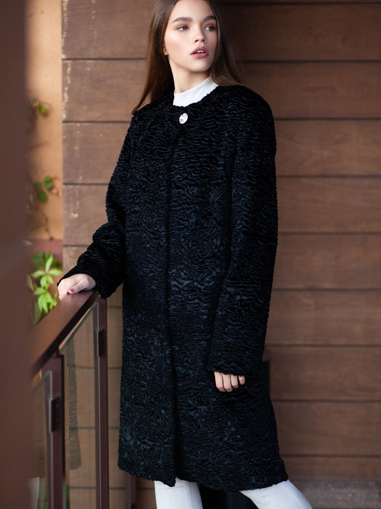 Жіноче пальто з еко-хутра – Каракуль Обсидіан