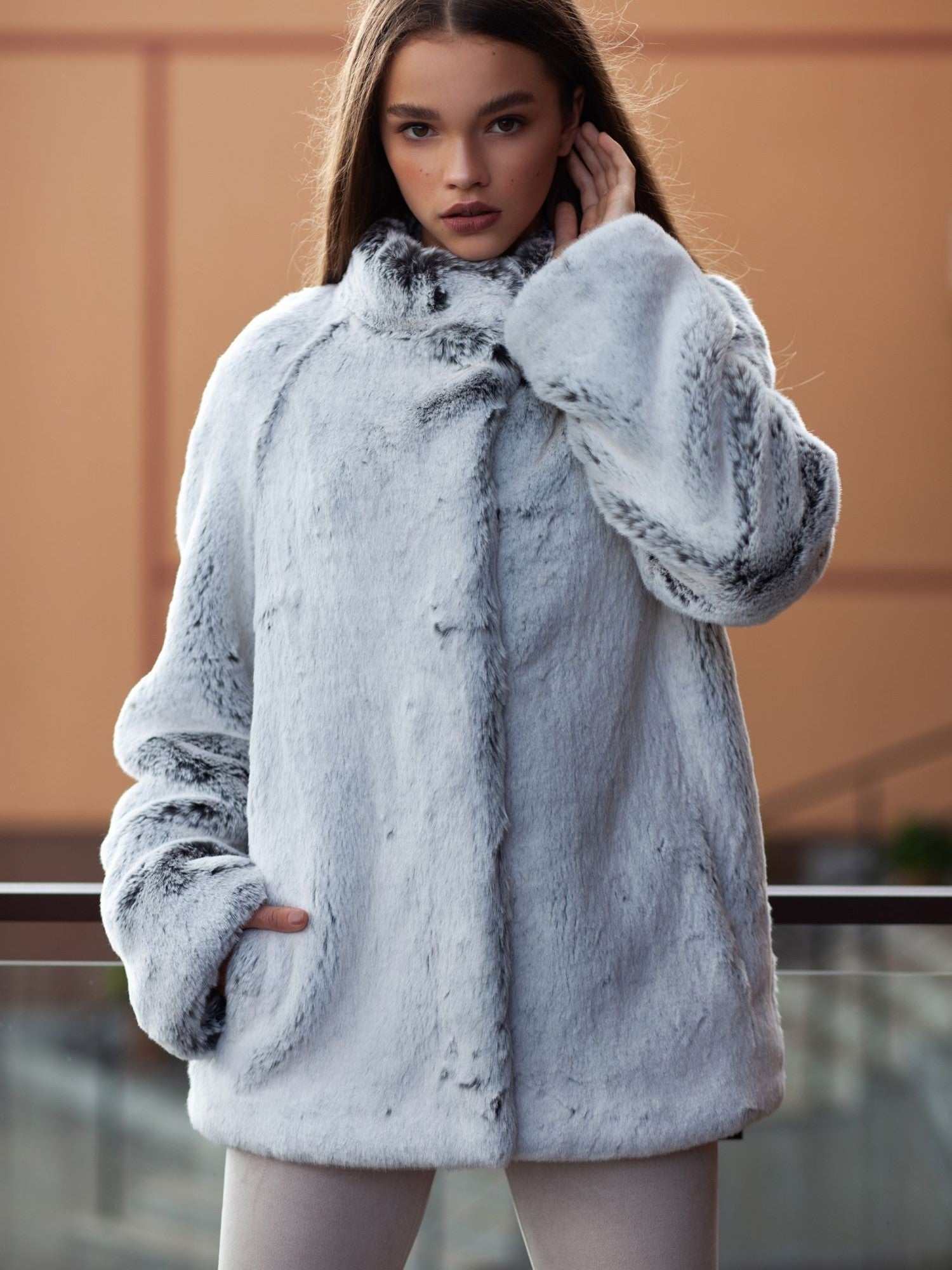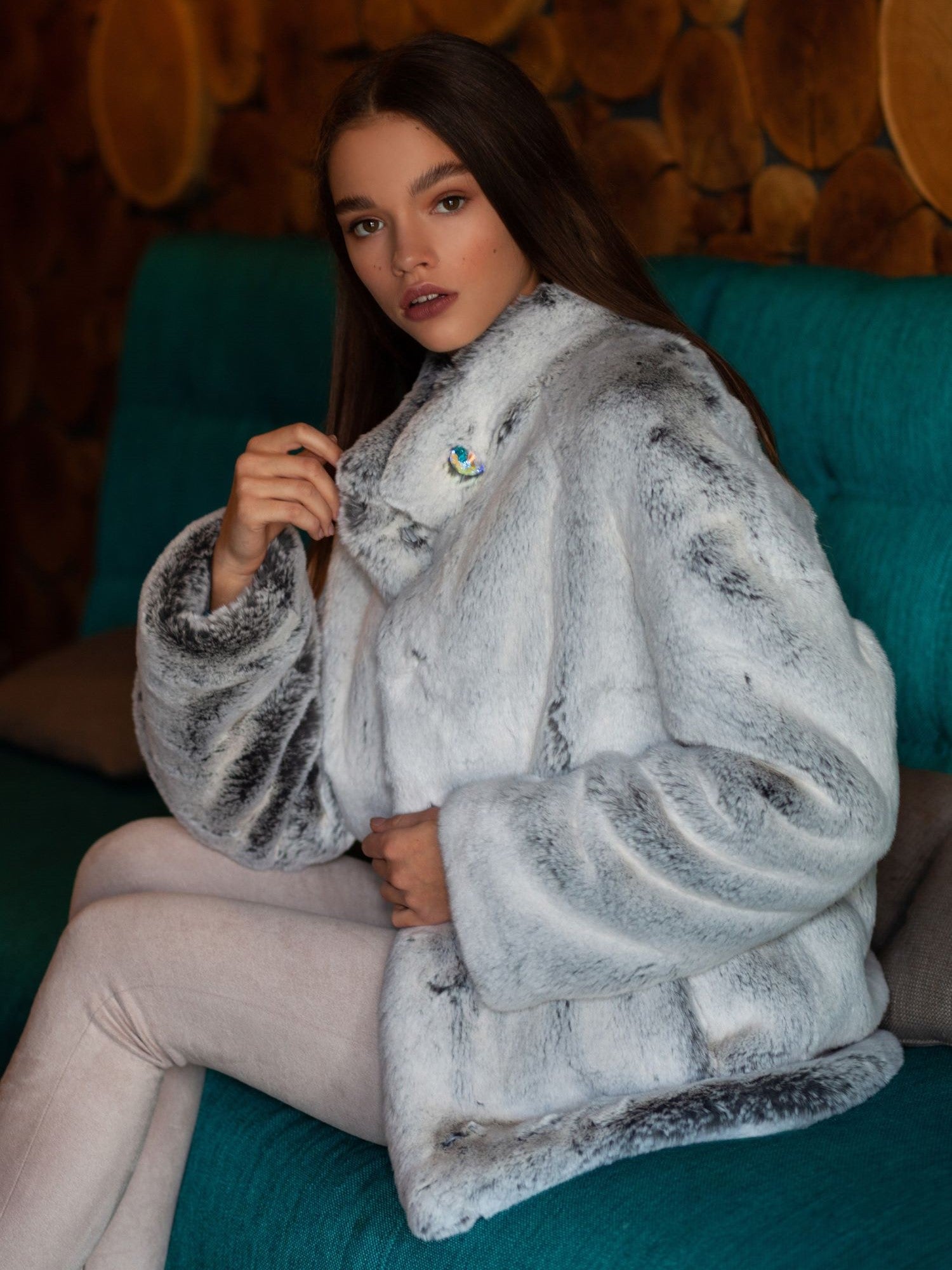 Жіноча шуба з еко-хутра – Шиншила Алмаз