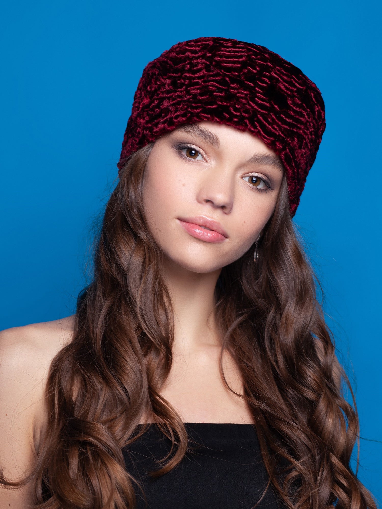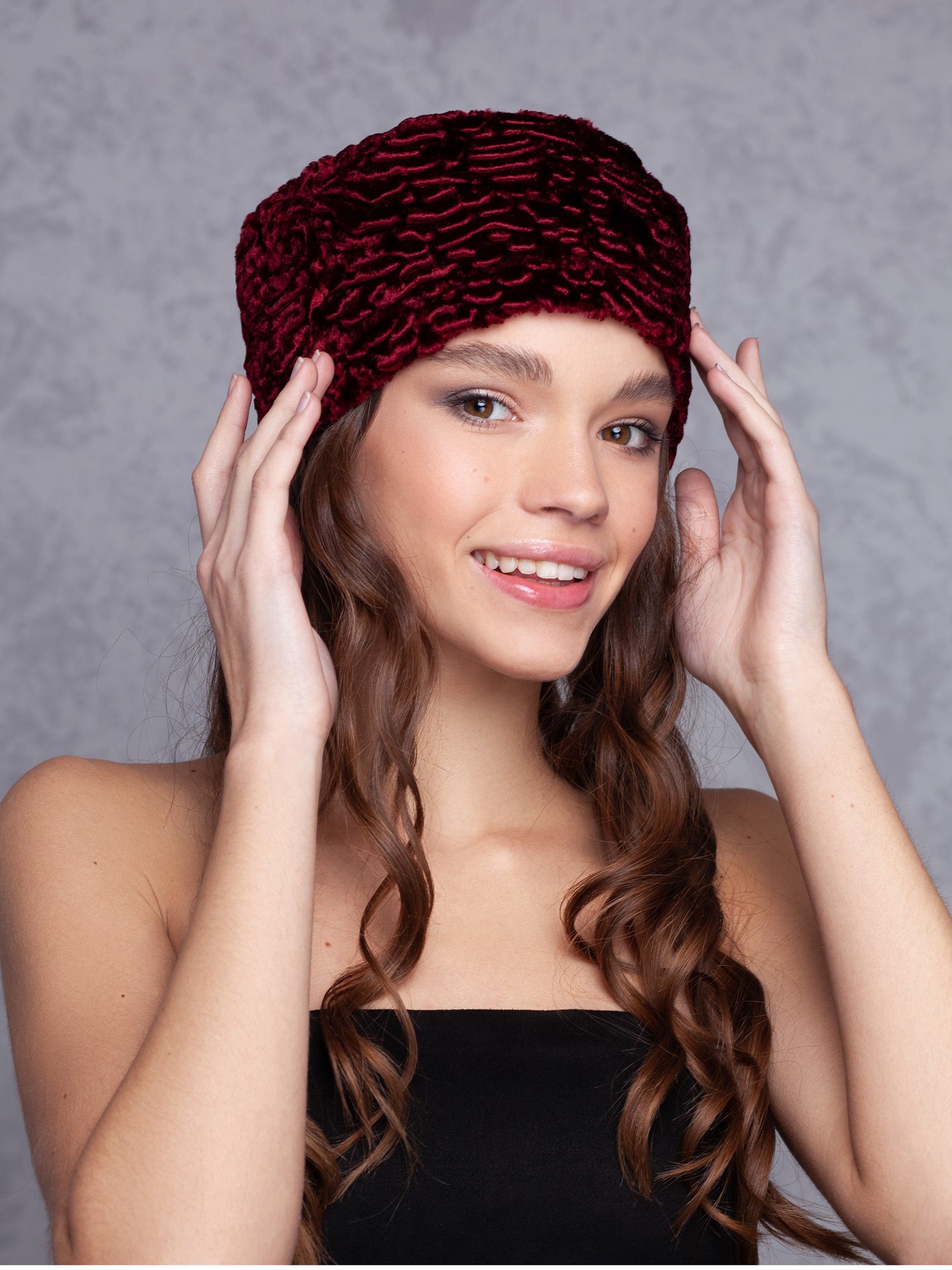 Жіноча шапка з еко-хутра – Каракуль Гранат
