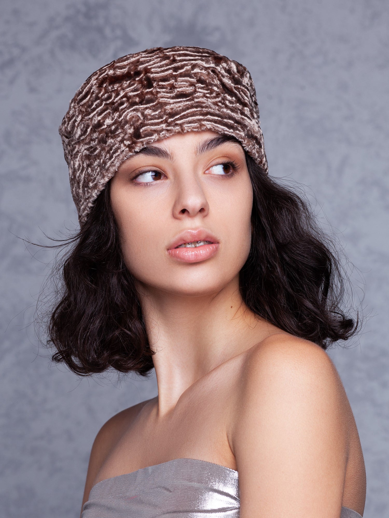 Жіноча шапка з еко-хутра – Каракуль Онікс