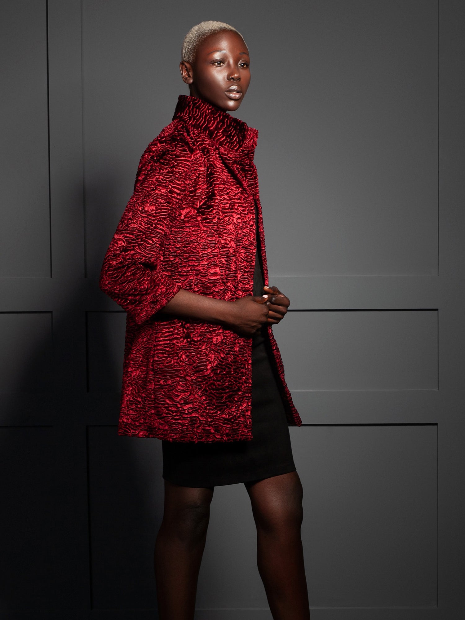 Хутро цього виробу – Каракуль Гранат.