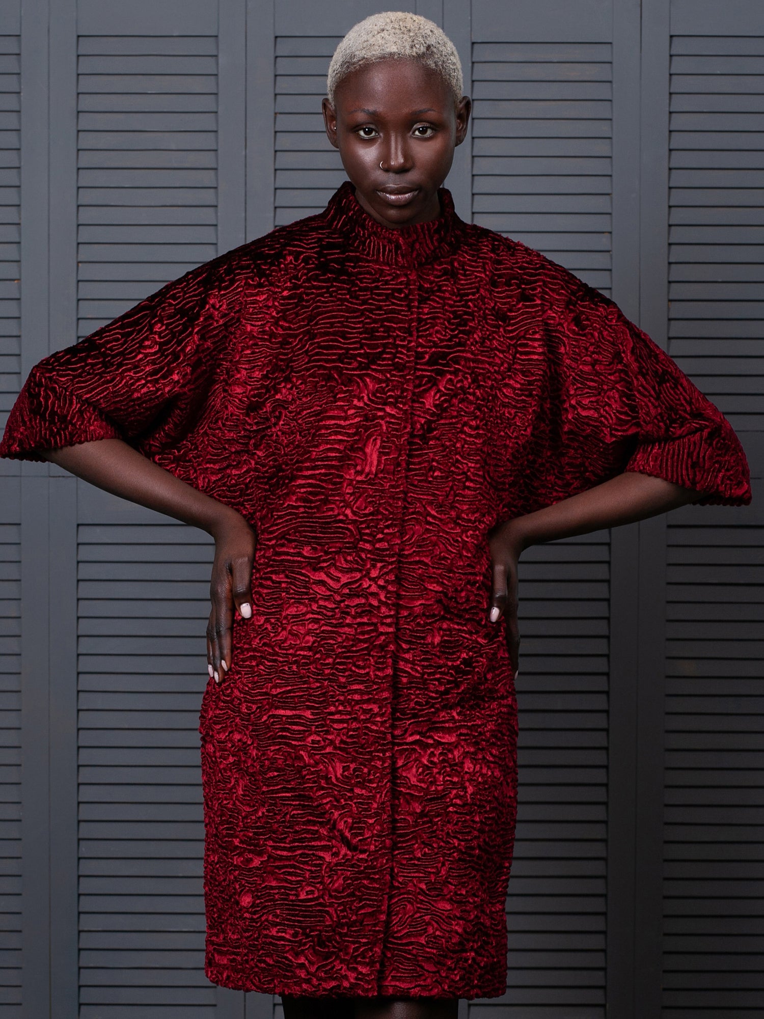 Жіночий жакет з еко-хутра – Каракуль Гранат