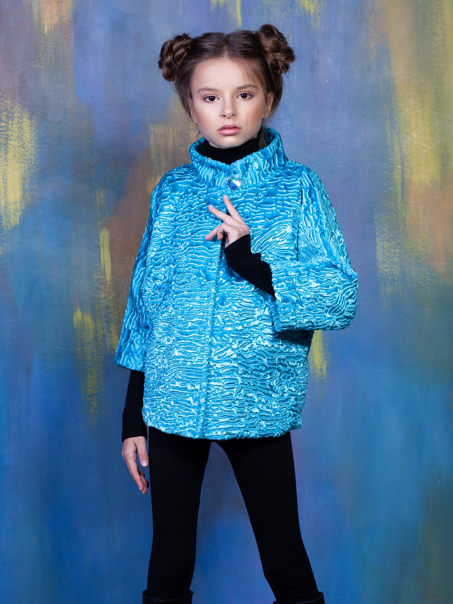 Дитяче пальто з еко-хутра - Каракуль Аквамарин